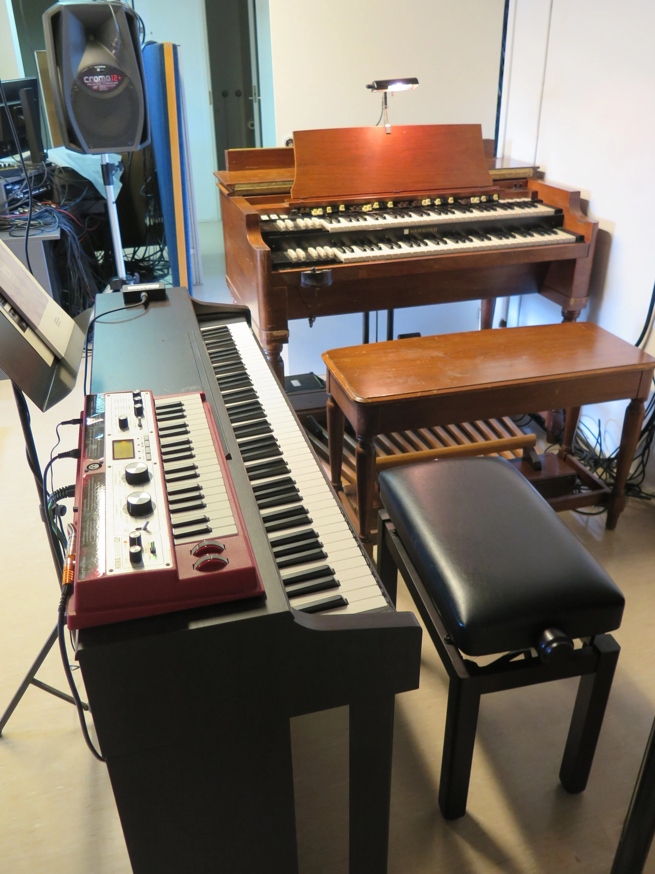 1968 Old Style Hammond B3, Roland digital piano, and Korg micro XL